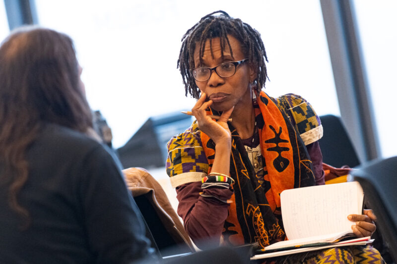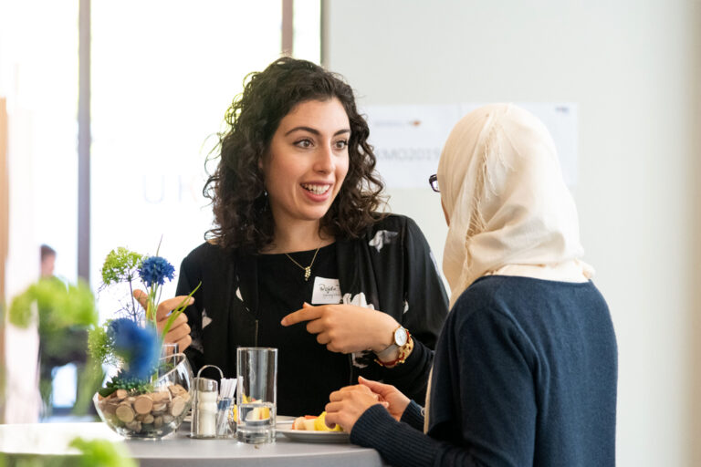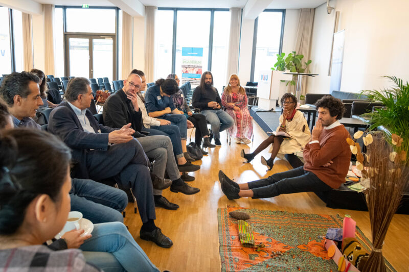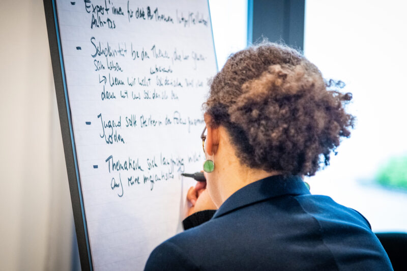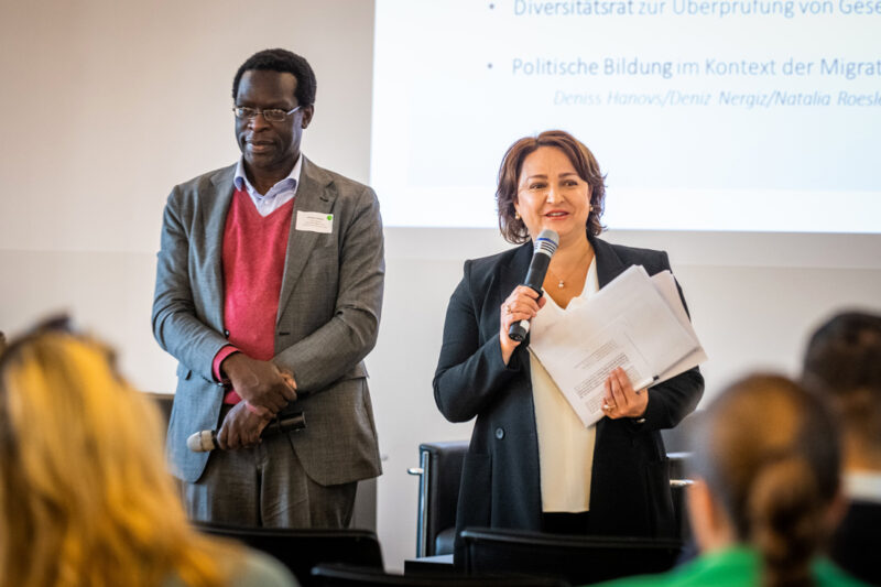 Am zweiten Tag wurde die Arbeit der AGs Politische Bildung, Empowerment & Antirassismus, Partizipationsgesetz und Diversitätsrat fortgesetzt. Die AGs erarbeiteten Forderungen und präsentierten diese anschließend in einem Podiumsgespräch den politischen Vertreter*innen Gesine Agena, stellvertretende Parteivorsitzende und frauenpolitische Sprecherin von Bündnis 90/Die Grünen, Grigorios Aggelidis, Sprecher für Familie und Senioren der FDP-Bundestagsfraktion und Christine Buchholz, Mitglied im geschäftsführenden Parteivorstand Die Linke und religionspolitische Sprecherin der linken Bundestagsfraktion.