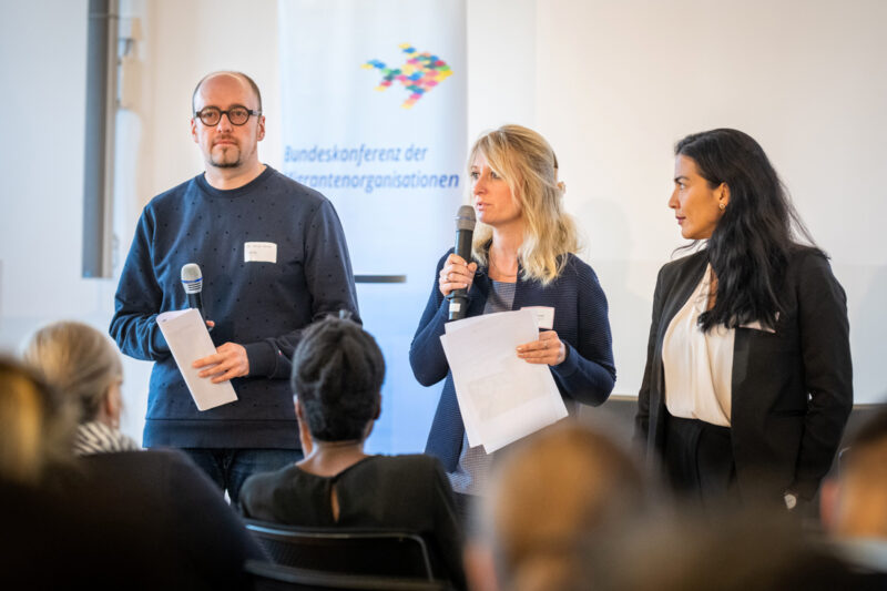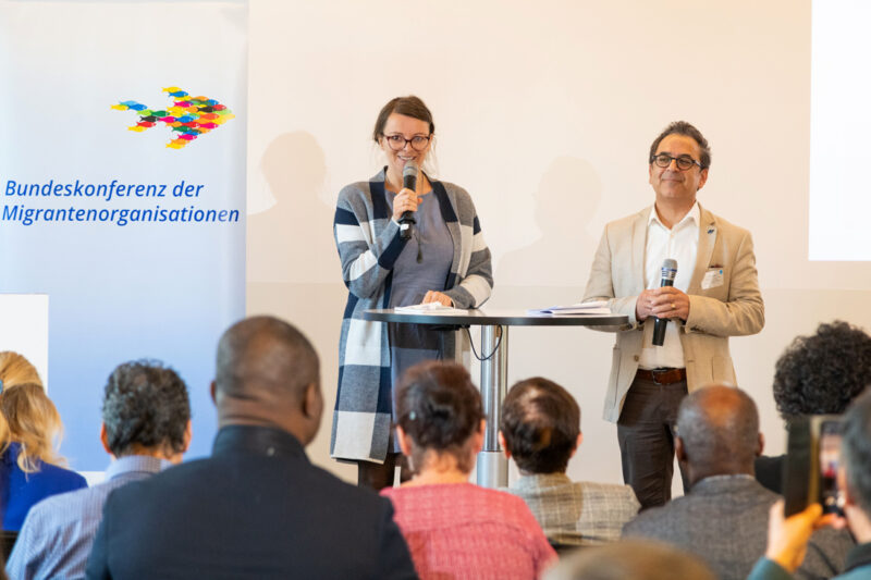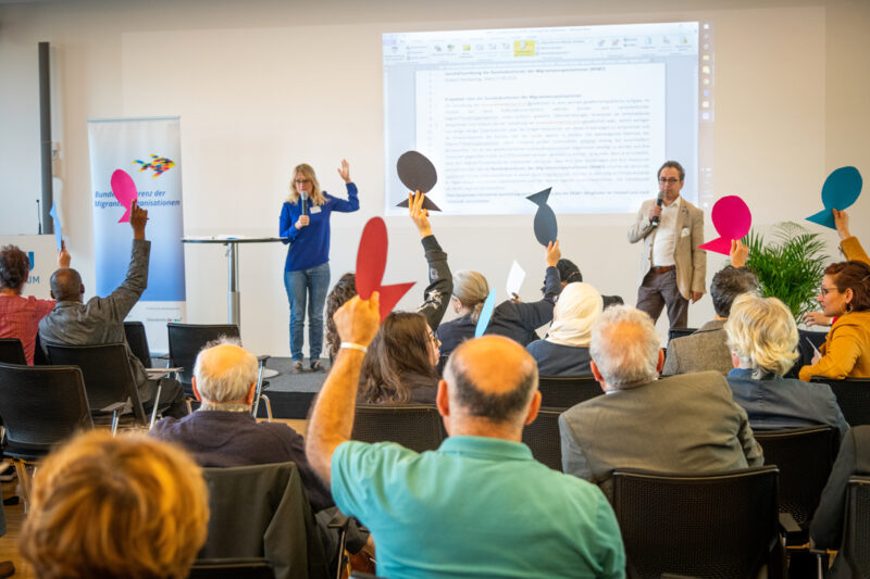 Am 19. und 20. September fand im VKU-Forum in Berlin die nunmehr 4. Bundeskonferenz der Migrantenorganisationen (BKMO) statt. Nach der Begrüßung durch Mitglieder des Vertreter*innenrats und einer Keynote Speech von Prof. Dr. Rita Süssmuth, Bundestagspräsidentin a.D., stellte der Vertreter*innenrat seine Vorschläge zur Überarbeitung der Geschäftsordnung vor, die daraufhin von der gesamten Konferenz abgestimmt wurde. Anschließend stand am ersten Tag das Vernetzen und Bilden solidarischer Allianzen und die Identität und Vision der BKMO im Fokus.
