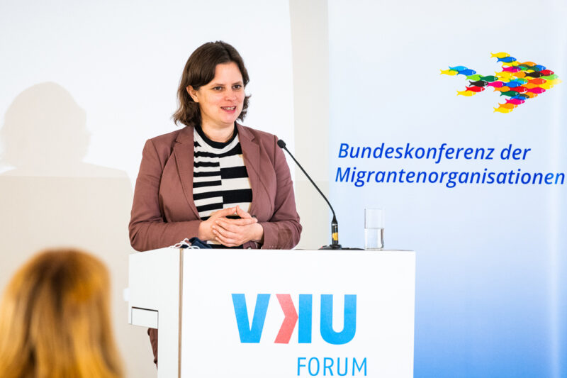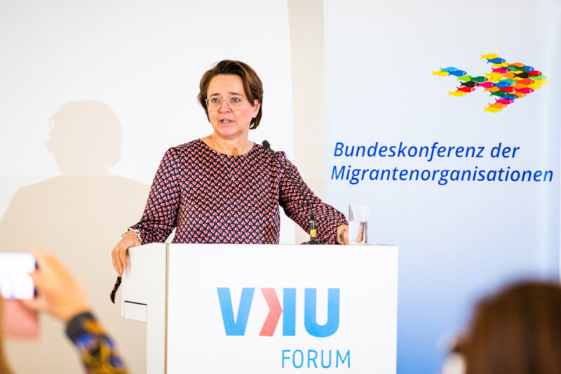 Am zweiten Tag, den 6.10., eröffnete Staatsministerin Annette Widmann-Mauz, Beauftragte der Bundesregierung für Migration, Flüchtlinge und Integration, die Grußworte und bedankte sich für das Engagement der vielen Organisationen und Ehrenamtlichen. Darauf folgten Juliane Seifert, Staatssekretärin im Bundesministerium für Familie, Senioren, Frauen und Jugend und Winfried Kneip, Geschäftsführer der Stiftung Mercator, und erläuterten ihre Sicht auf die BKMO. Frau Seifert ging dabei insbesondere auf den Kabinettsausschuss zur Bekämpfung von Rechtsextremismus und Rassismus ein und merkte an, wie wichtig dessen kritische Begleitung der BKMO und ihres eingesetzten Expert*innengremiums ist.