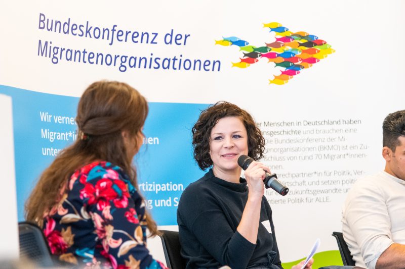 „Wir möchten nicht nur einen Teil des Kuchens abhaben, sondern mitentscheiden, welcher Kuchen aus welchen Zutaten zubereitet wird!“ – dies waren die Begrüßungsworte von Dr. Kamila Schöll-Mazurek, aktuell neben Michael AlliMadi Sprecherin der BKMO, zur 6. Bundeskonferenz der Migrant*innenorganisationen. Ein gutes Motto für die Arbeit der BKMO!