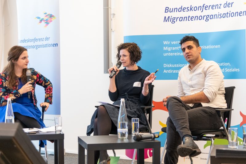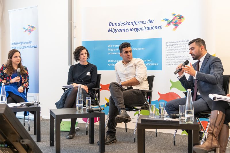 Entsprechend blickten wir zurück auf den Wahlkampf und die Wahl und diskutierten mit politischen Vertreter*innen, was wir als BKMO von der nächsten Regierung und auch vom Bundestag erwarten. So erwarten wir, dass sich unsere gesellschaftliche Vielfalt auch im Bundeskabinett wiederspiegelt. Wir setzen auf die Verabschiedung eines Bundespartizipationsgesetzes, um die nötigen Rahmenbedingungen für umfassende gesellschaftliche Teilhabe von Personen mit Migrationsgeschichte bzw. Diskriminierungserfahrung zu schaffen. Und wir fordern, die Themenbereiche Partizipation und Chancengerechtigkeit, Chancengleichheit, die Arbeit gegen Rassismus und Asyl- und Migrationspolitik im Rahmen eines eigenständigen Ministeriums für gesellschaftlichen Zusammenhalt zusammenzulegen.