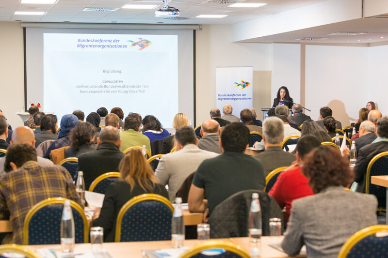Erstmals in der Geschichte der Bundesrepublik kamen am 20. und 21. November 2017 in Berlin Migrantenorganisationen aus ganz Deutschland selbstbestimmt und mit eigener Agenda zusammen. Über 100 Vertreter*innen aus 60 Organisationen und Institutionen setzten mit dieser 1. Bundeskonferenz der Migrantenorganisationen – initiiert von der Türkischen Gemeinde in Deutschland und ermöglicht durch das Bundesprogramm „Demokratie Leben!“ des BMFSFJ – ein deutliches Zeichen: „Wir wollen diese Gesellschaft mitgestalten!“ Sie verabschiedeten einen gemeinsamen Fahrplan für die künftige Zusammenarbeit und formulierten zentrale Forderungen an die Politik: